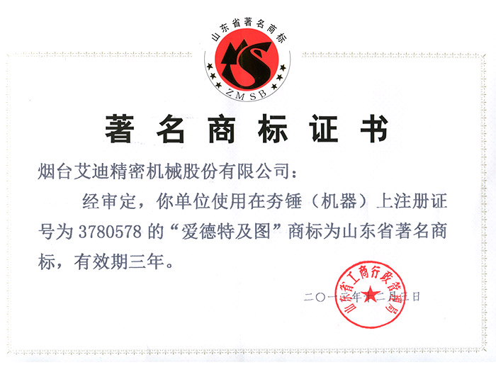 根据《山东省著名商标认定和保护办法》及有关规定,经省工商行政管理局严格评审,我司“爱德特及图”商标被山东省工商行政管理局认定为“山东省著名商标”,这是我司实施品牌战略进程中的一大喜讯。